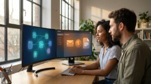 En 2026, Bubble et FlutterFlow s’imposent comme deux géants du no-code, mais répondent à des besoins radicalement différents. Tandis que Bubble excelle dans la création d’applications web complexes avec backend intégré, FlutterFlow domine le marché des applications mobiles natives cross-platform. Ce comparatif détaillé analyse leurs forces, limites, tarifs réels et cas d’usage pour vous aider